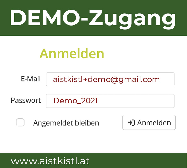 Möchtest du gerne mal reinschnuppern, ohne dir ein eigenes Konto zu erstellen?Dann probiere unseren Demozugang aus und schau dir alles in Ruhe an.